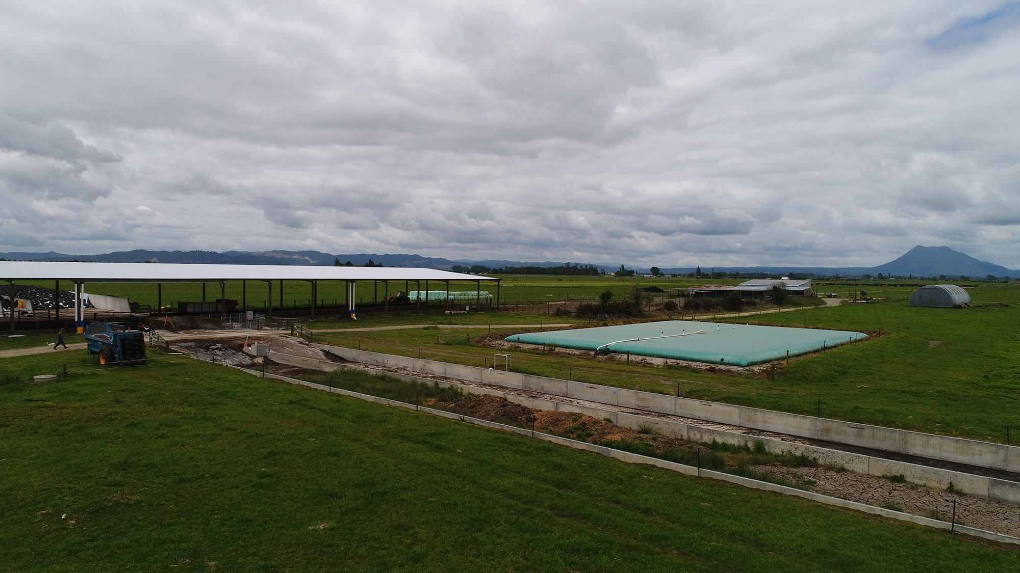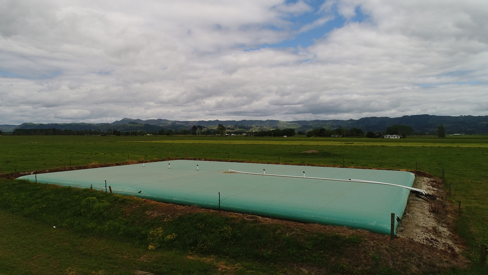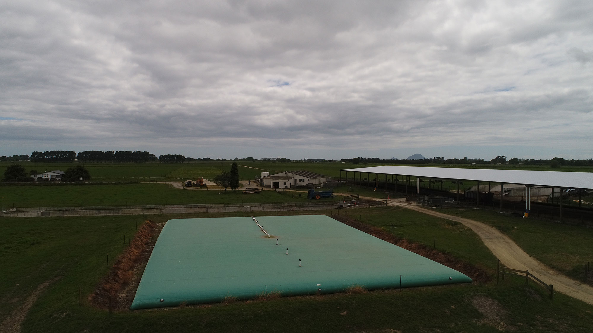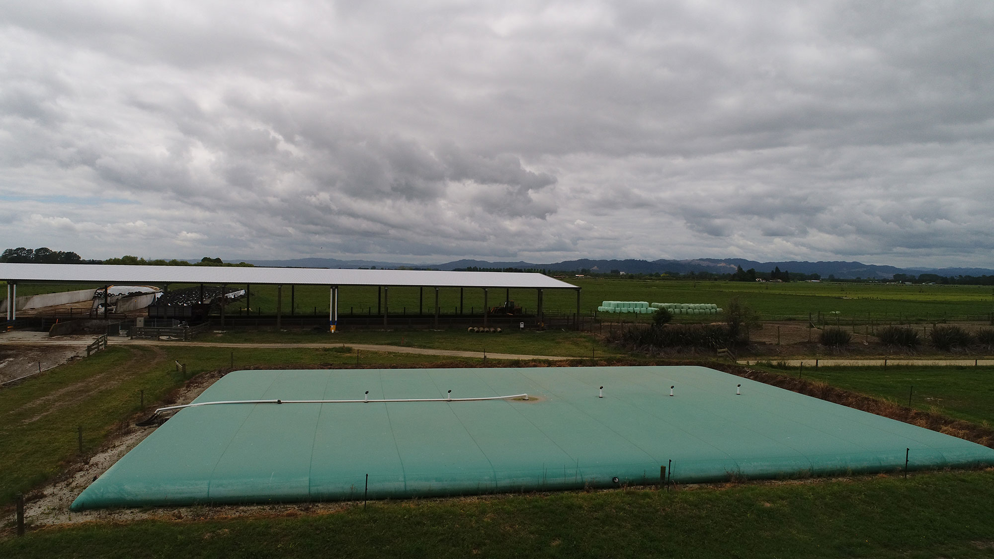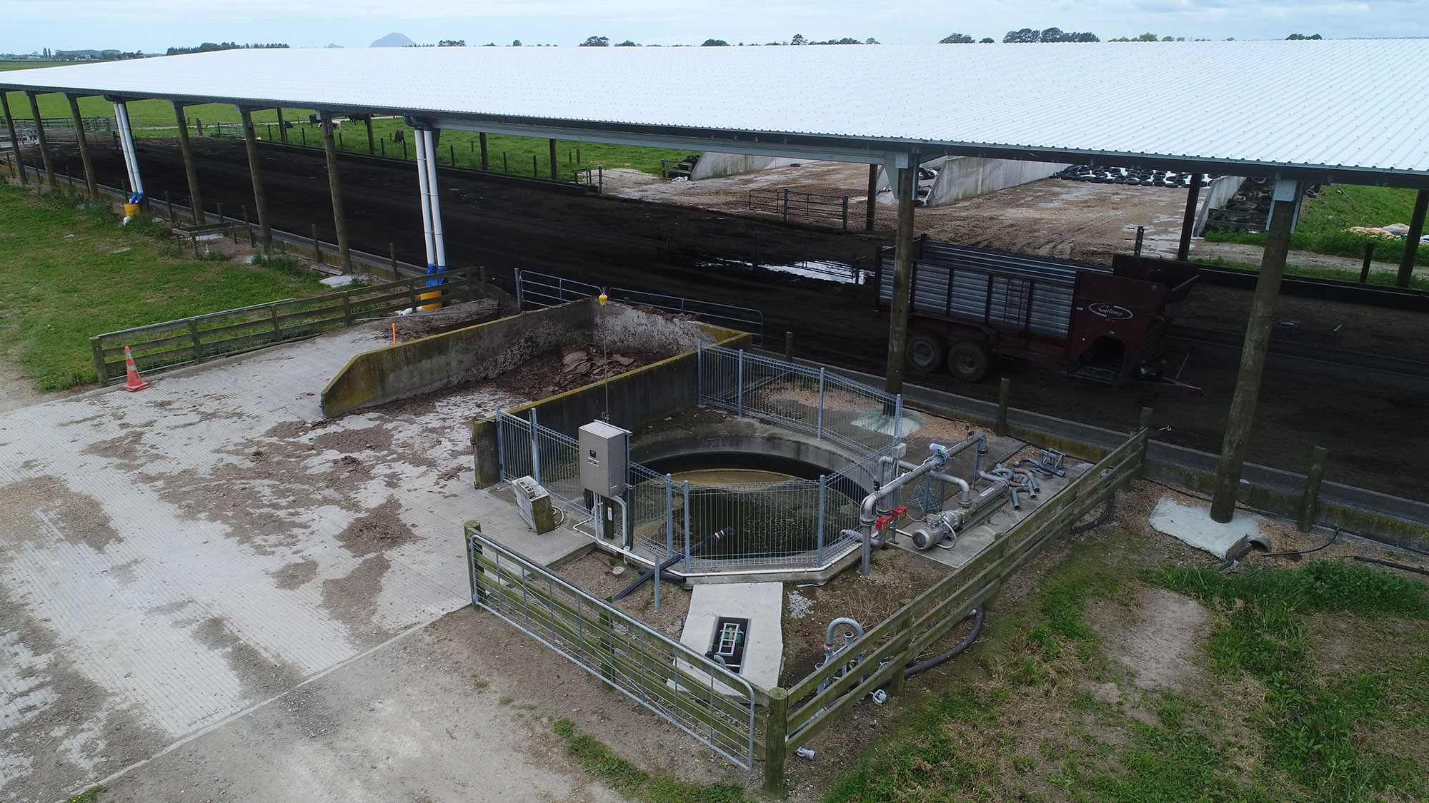 - The first key element was to limit the amount of rainwater entering the system to minimise the amount of irrigation and overall storage needed. This was done by using a Vortex Bladder as the main storage, and also covering the feedpad