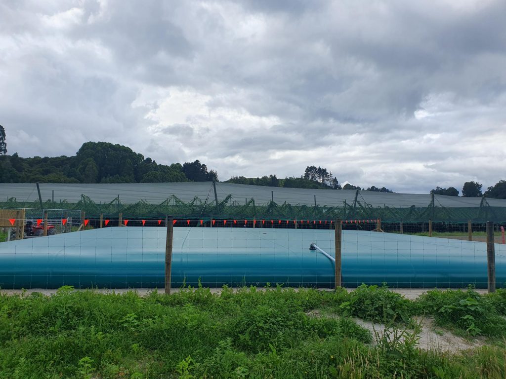 On this particular orchard a 600m3 Water Bladder was installed. This is filled from a nearby water way using a submersible pump that is sensor controlled to start when the minimum level is reached in the Water Bladder. With consent restrictions on the volumes drawn per minute from the waterway, these sensors were critical to maintaining the desired storage volumes required for the frost protection to work effectively, as was the initial sizing of the Water Bladder.